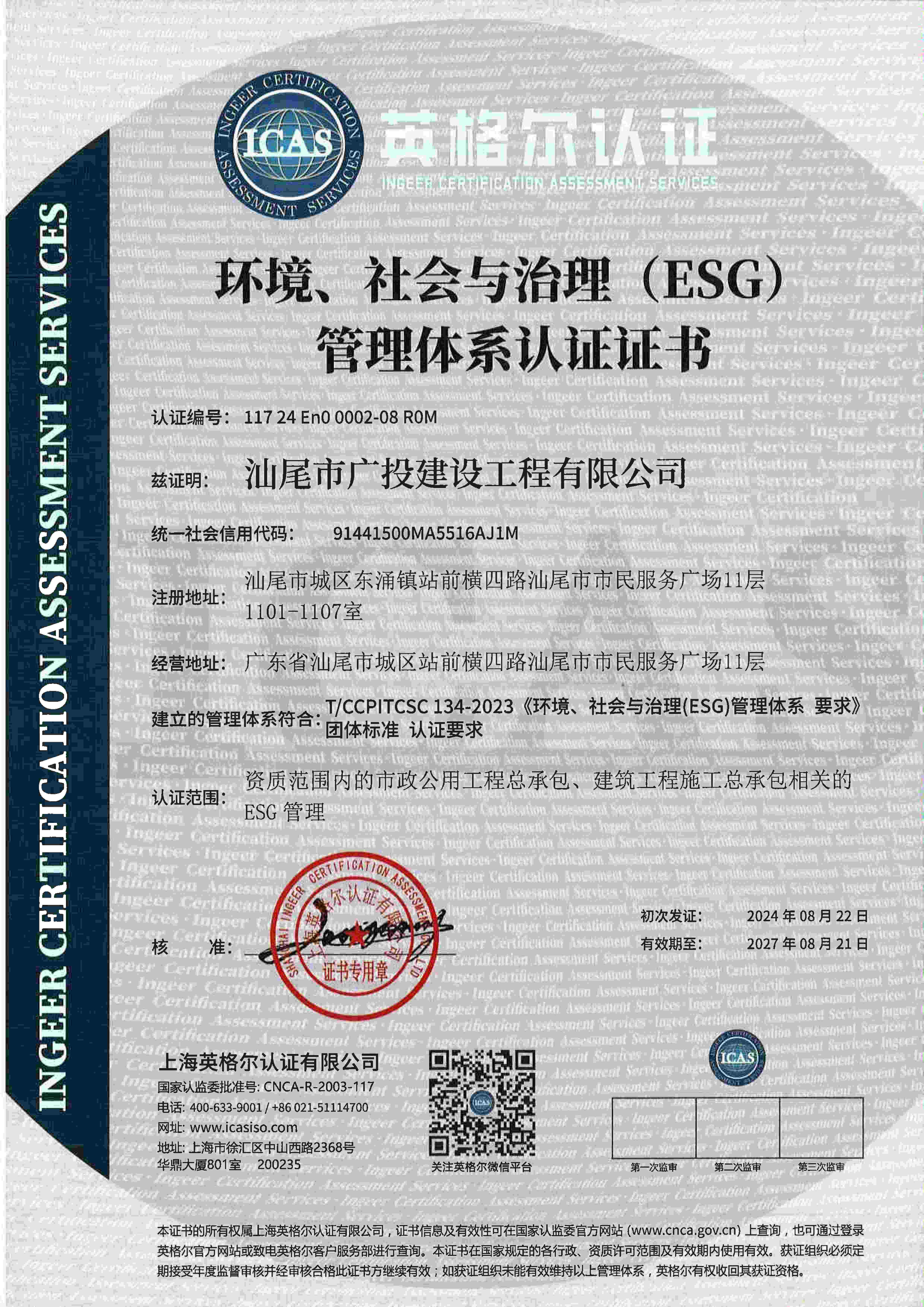 引領(lǐng)基建行業(yè)綠色變革——汕尾廣投公司獲評中國基建行業(yè)首個ESG管理體系認(rèn)證